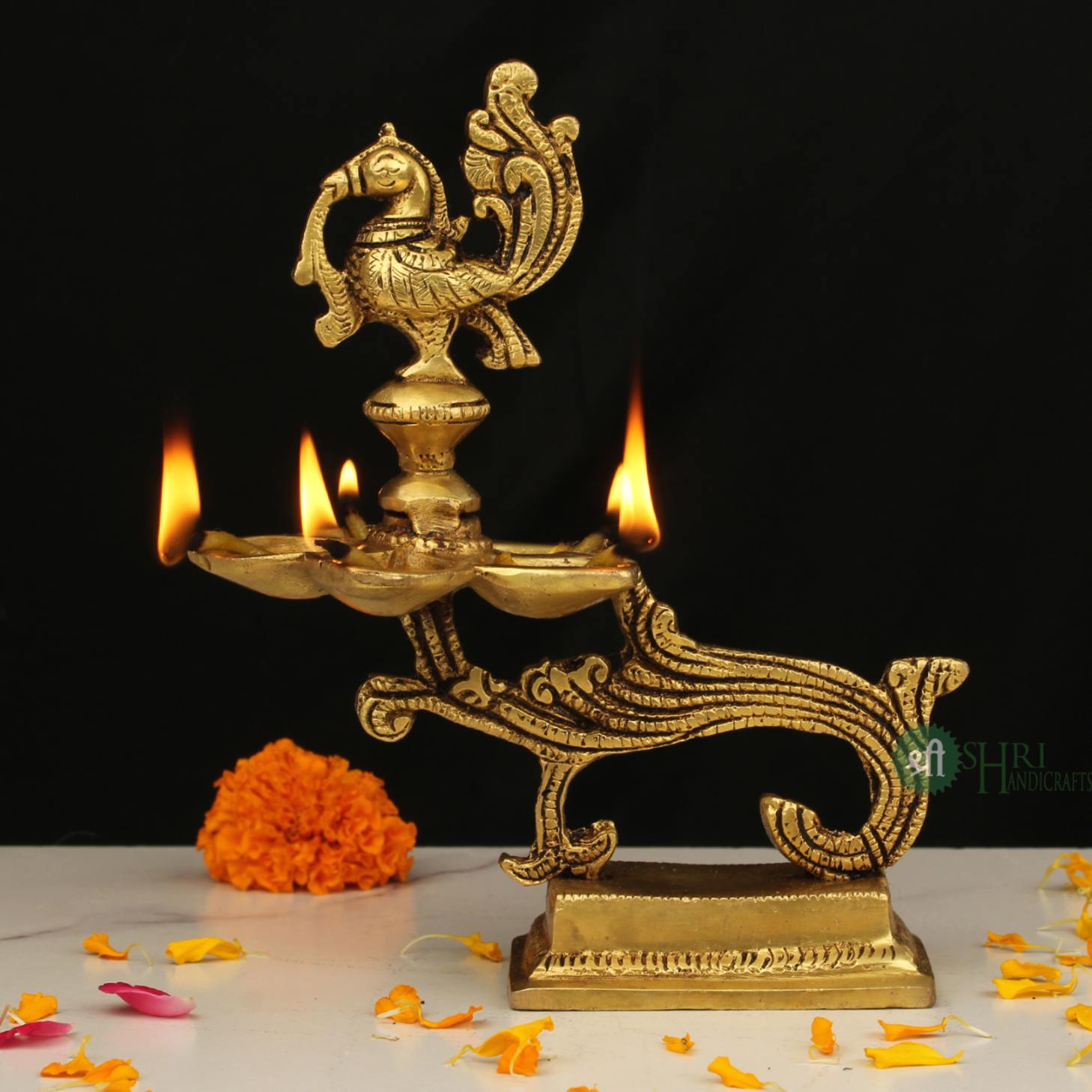Crafted from high-quality brass, this lamp is not only a source of light but also a symbol of purity, dedication, and the dispelling of darkness. Its substantial weight ensures stability and durability, making it a timeless addition to your spiritual practice or home decor.