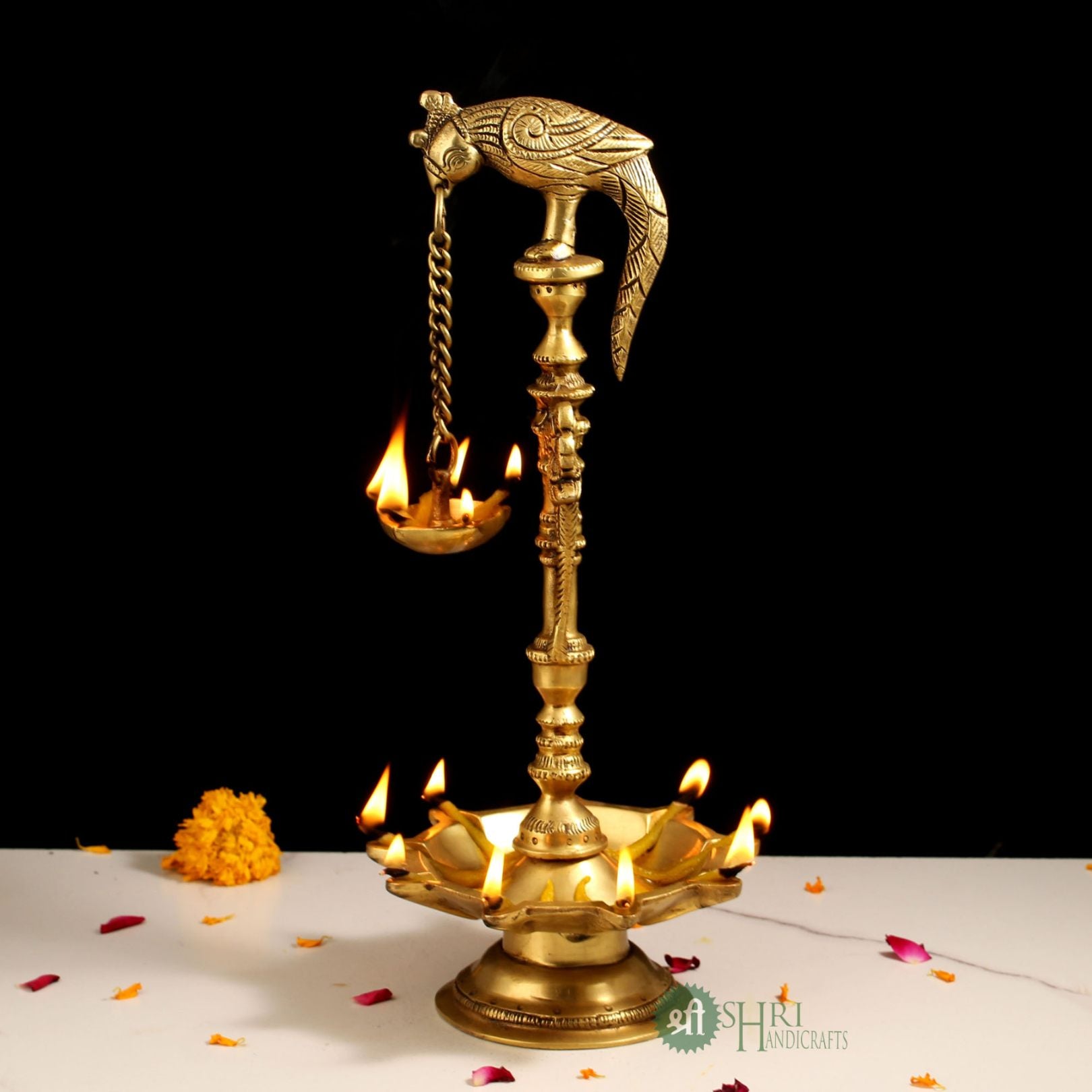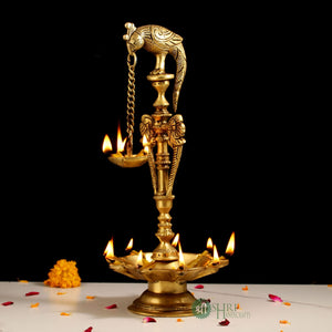 Discover the allure of tradition with our exquisite Brass Bird Deepak, a masterpiece of craftsmanship that effortlessly blends ancient elegance with contemporary charm. Standing at a majestic height of 35 cm, with a depth of 9 cm and a length of 8 cm, this ornate piece captivates with its intricate detailing and robust weight of 1.84 kg, promising both durability and style. Perfect for illuminating your home with a warm, golden glow, the Brass Bird Deepak is not just a lamp, but a beacon of heritage, designed to transform any space into a serene sanctuary. Ideal for collectors, interior designers, and anyone with an eye for timeless beauty, this Brass Bird Deepak is a testament to the artistry of traditional Indian metalwork, offering a unique touch of sophistication to your décor.