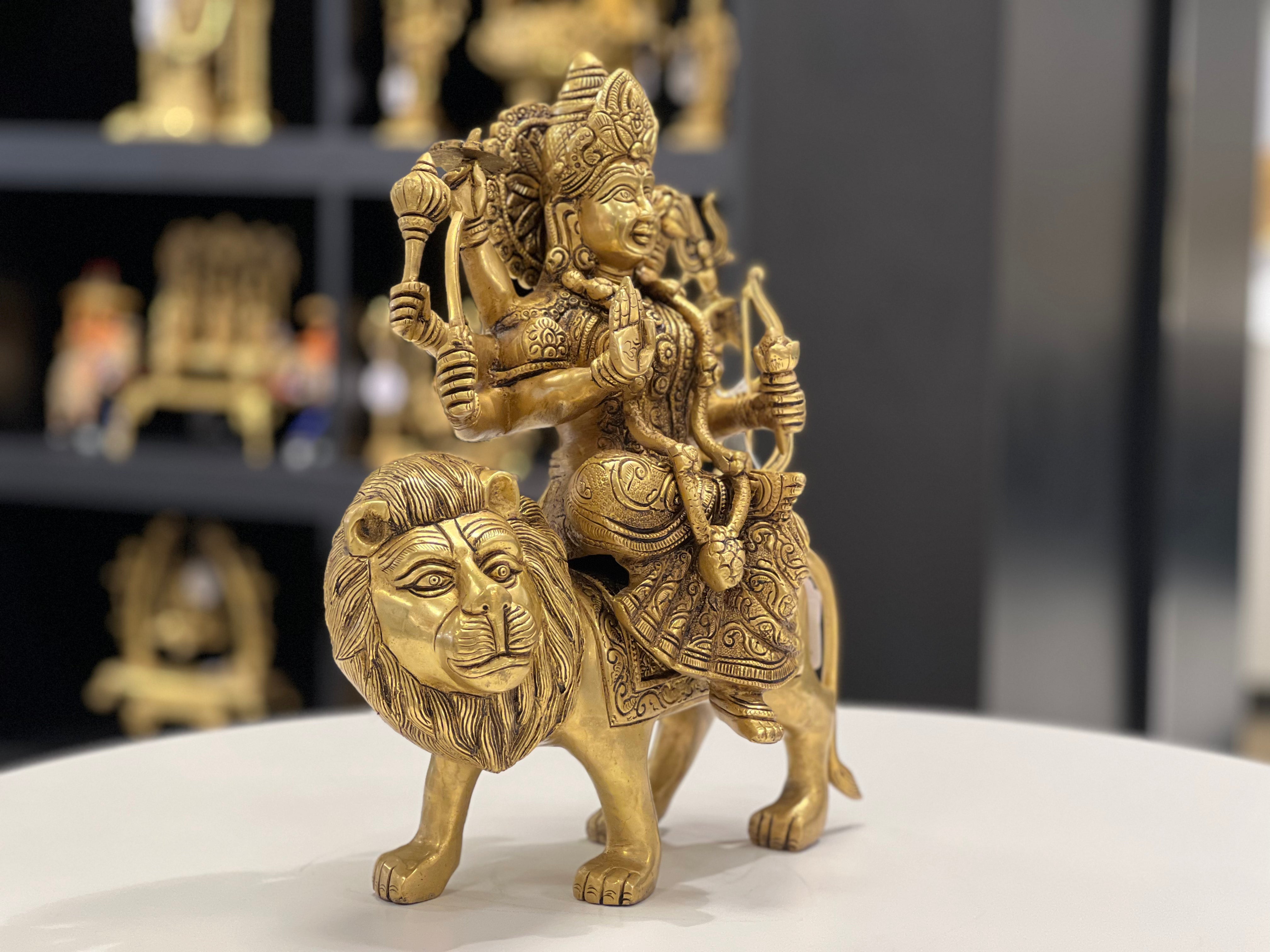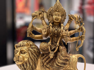 Whether adorning your home altar, temple, or meditation space, the Brass Durga Sitting on Lion serves as a powerful symbol of protection, strength, and victory over evil forces.