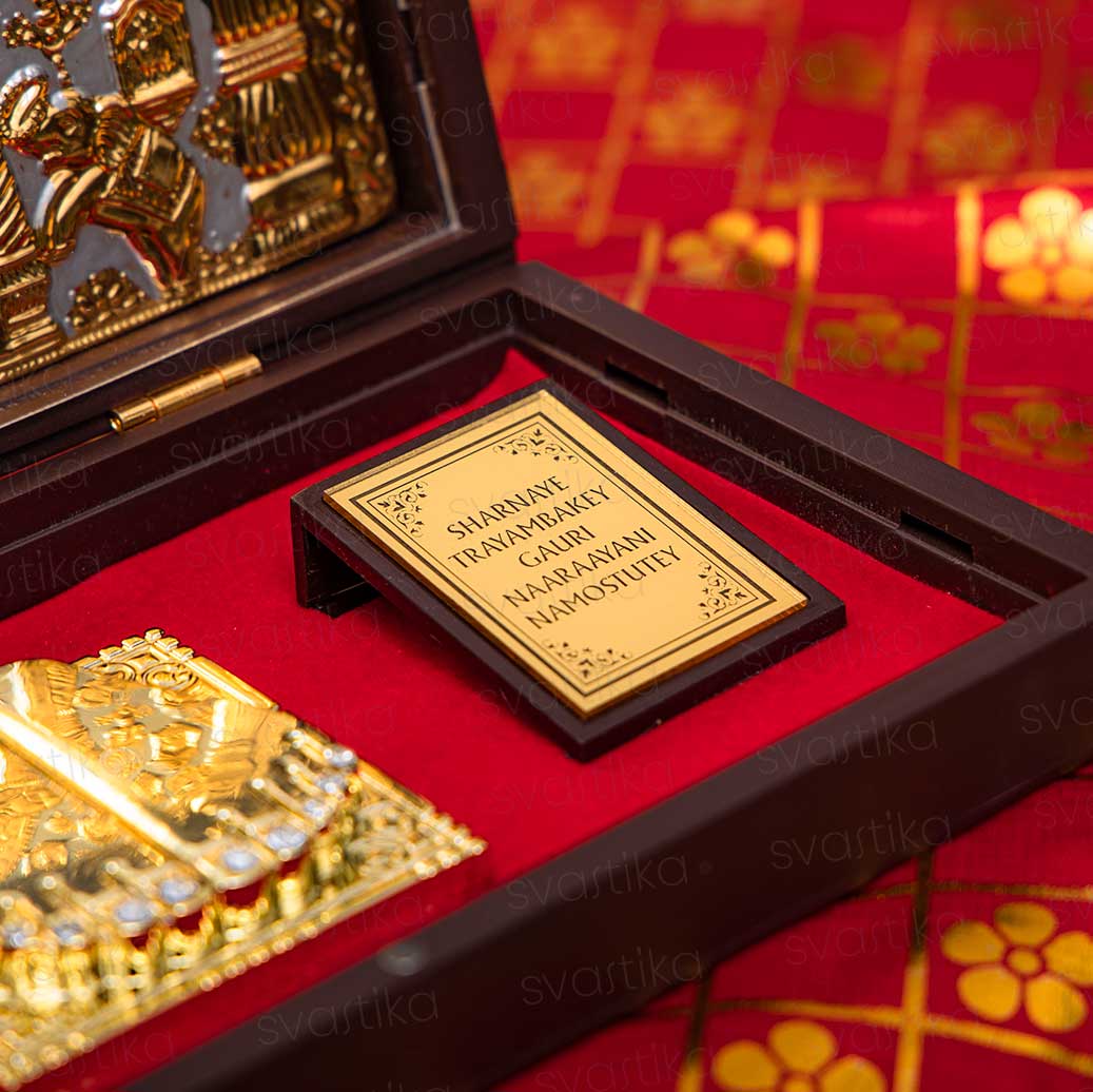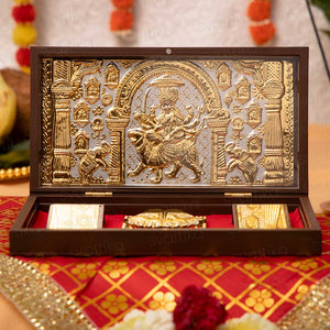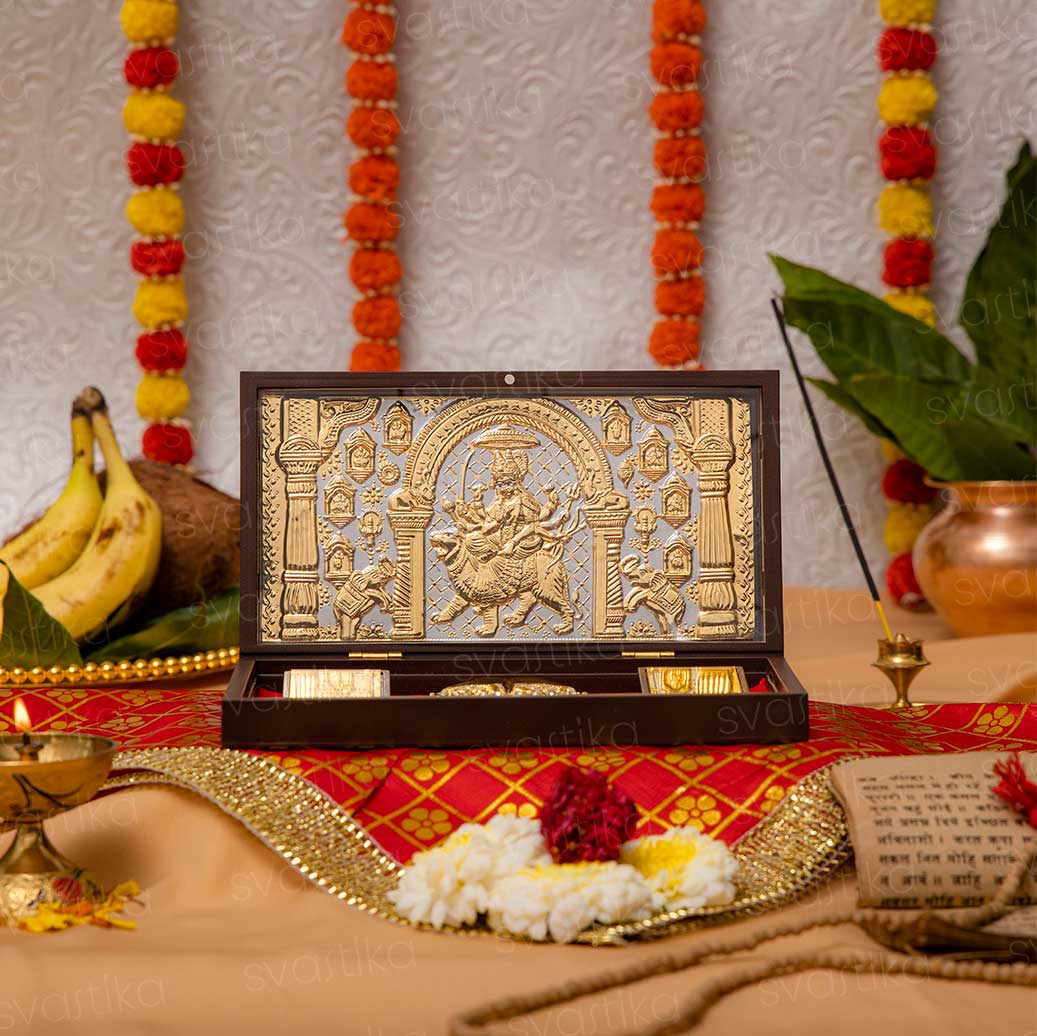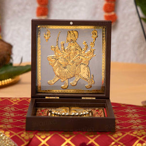 It's an auspicious & alluring addition to your altar, locker, puja room, or any religious setting. Also a sentimental exchange of Mata's blessings for the festive season, a uplifting gift for a loved one, this pocket temple is sure to bring joy and blessings to your life.