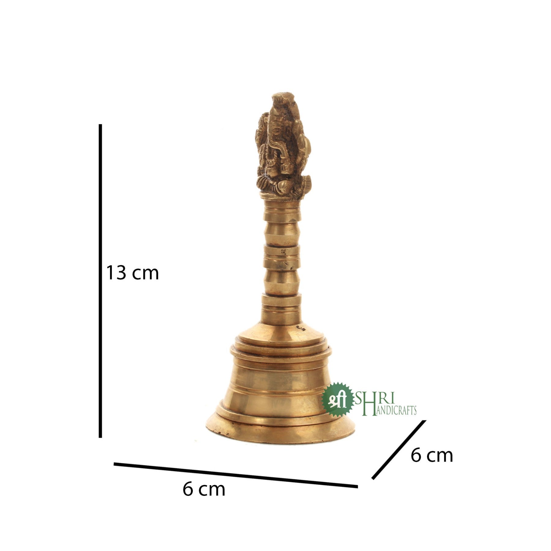 Introducing our exquisite 5.5" Brass Hand Bell, a traditional musical instrument crafted to enrich your spiritual practices and ceremonies with its melodious sound. With dimensions of 13cm in height, 6cm in length, and 6cm in breadth, this brass bell exudes elegance and charm.