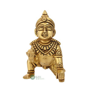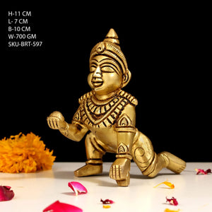 Bring home divine innocence, joy, and prosperity with this beautifully crafted Brass Laddu Gopal Idol, a sacred representation of Bal Krishna in his playful crawling posture.
