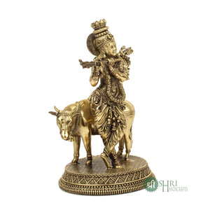 6.5″ Brass Shri Krishna with Cow Statue