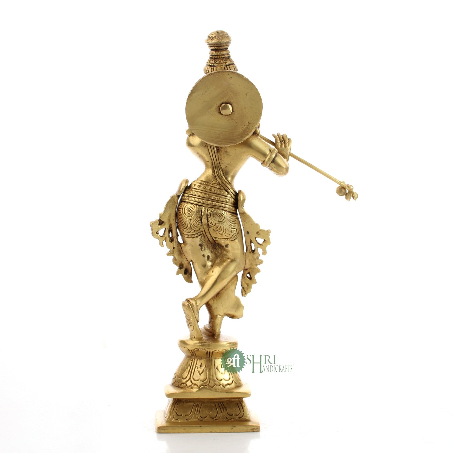 This Brass Krishna statue is not merely a decorative item; it's a symbol of love, joy, and divine music, resonating with the hearts of devotees and collectors alike. Ideal for placing in your home temple, living room, or as a serene addition to your office, it enhances the spiritual ambiance of your space. It serves as a perfect gift for festivals, housewarmings, or any occasion celebrating Indian culture and spirituality. Imbibe your surroundings with the divine melody and grace of Lord Krishna, making this sculpture a cherished part of your collection or a thoughtful gift for someone special.