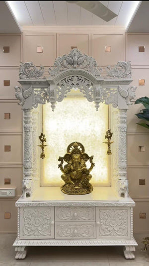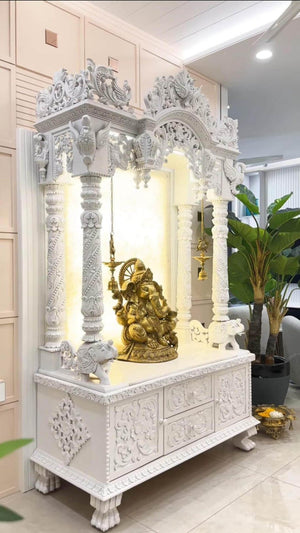 Home temple white glossy Handmade Customizable Home Wooden Temple solid teakwood hand carved unique Large Wooden Mandir All Handcrafted