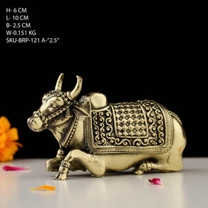 Crafted from solid brass with an antique gold finish, the idol features intricate ornamental detailing on Nandi’s body, saddle cloth, and facial features. Despite its small size, the sculpture carries strong spiritual significance and a premium handcrafted look.
