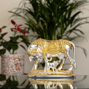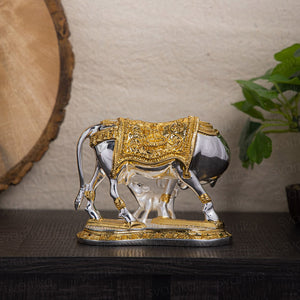 Vastu Kamdhenu Cow with Calf Idol | Gold & Silver Plated - By Trendia