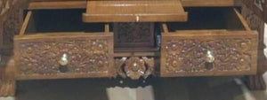Handmade Teakwood Temple, Large Carved Mandir with Drawers
