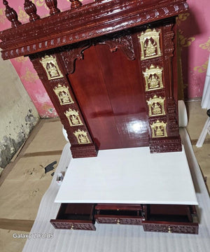 * **Premium solid wood handmade temple with traditional carvings**