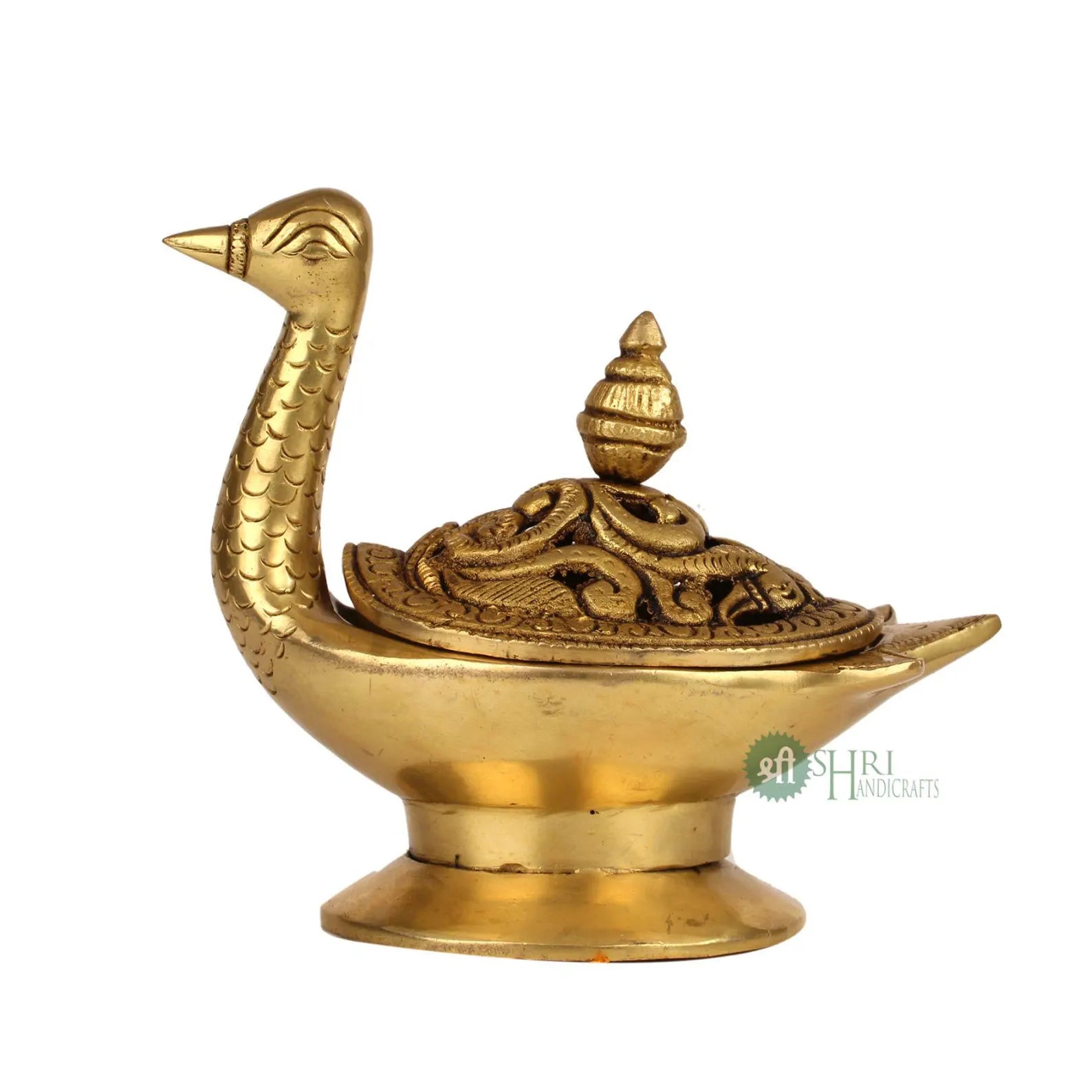 Enhance the spiritual aura of your home with this exquisitely handcrafted Brass Duck Shape Dhuni. Designed in the form of a graceful duck, this traditional dhuni is perfect for burning dhoop, sambrani, loban, or incense blends to purify the environment and invite peace, positivity, and wellbeing.