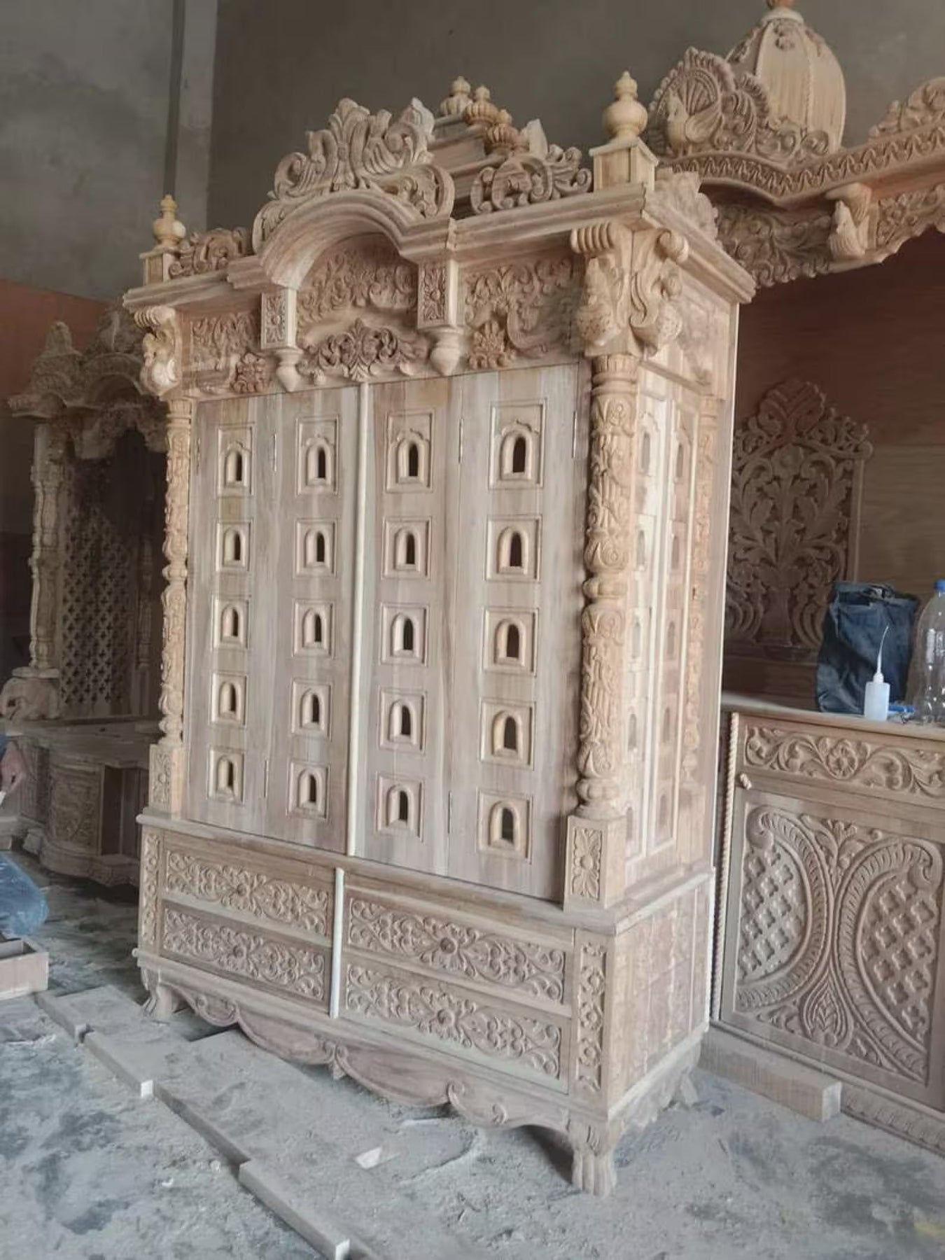 This is a wooden teakwood temple. Yes, Handmade item which I have brought for you all These temples are made with a lot of love and I made them with my own hands. My name is Raza and I try to make them very beautiful and design them with my own hands so that you have the best temple in your home. I work very hard to bring it to you. I work very hard to make this temple. Thank you very much to all of you.Discover the beauty and tranquility embodied in our Teakwood Handmade Wooden Temple. Crafted with precision and a touch of devotion, this temple is more than just a structure; it's an expression of artistry etched in exquisite teakwood. Feel the natural warmth of the rich teak as it brings a majestic yet serene aura to your sacred space, inviting peace and spirituality. Each delicate curve and intricate detail reflect the skilled craftsmanship of artisans who have perfected the art of temple making. The gentle glow of the polished wood adds an inviting touch, making every prayer feel cozy and intimate. Elevate your spiritual practices by creating a personal sanctuary that resonates with authenticity and reverence. Embrace the serenity this handmade temple brings into your home, and let it become the heart of your spiritual journey